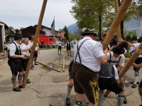 Bereits um 6.00 Uhr in der Früh traf man sich und schnitt den 30 Meter langen Maibaum um. Gegen 10 Uhr war der Baum dann auch schon geschmückt, sodass pünktlich um 12 Uhr mit dem Aufstellen begonnen werden konnte. Bei Grillspezialitäten, selbstgemachten Kuchen und erfrischenden Getränken ließen es sich die rund 500 Zuschauer gut gehen und folgte trotz zweifelhafter Wettervorhersage bei herrlichem Frühlingswetter und hervorragender musikalischen Unterhaltung durch die „Hallgrafen-Musikanten“ dem ganzen „Spektakel“ in gemütlicher Atmosphäre. Schon nach knapp zwei Stunden stand der Baum. Bis zum Wetterumschwung wurde das gelungene Aufstellen noch gefeiert. Der Verein bedankt sich noch einmal bei allen Helfern, ohne die dies alles nicht so funktionieren hätte können.